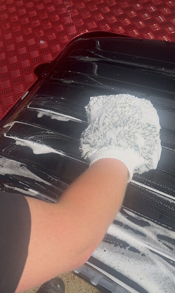 Unser Feinmikrofaser-Handschuh reinigt porentief, nimmt deutlich mehr Schaum auf und ist besonders schonend zu empfindlichen Lacken.