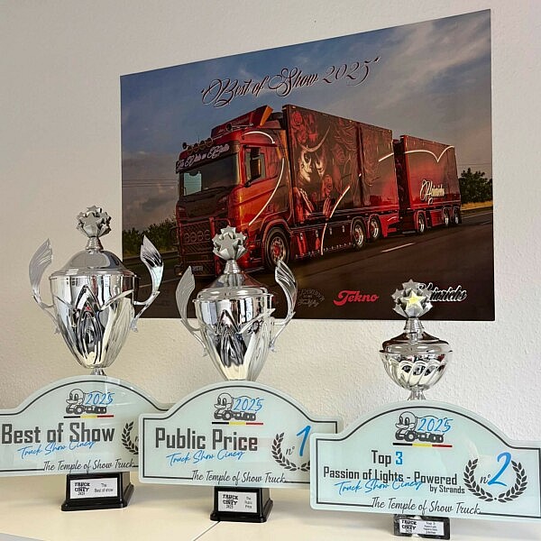 Auch das Ciney-Logo “The Temple of Show Truck” ist natĂŒrlich dabei – als Zeichen der Anerkennung und Erinnerung an das Event, bei dem unser HĂ€ngerzug zum Best of Show 2025 & Publikumsliebling wurde.