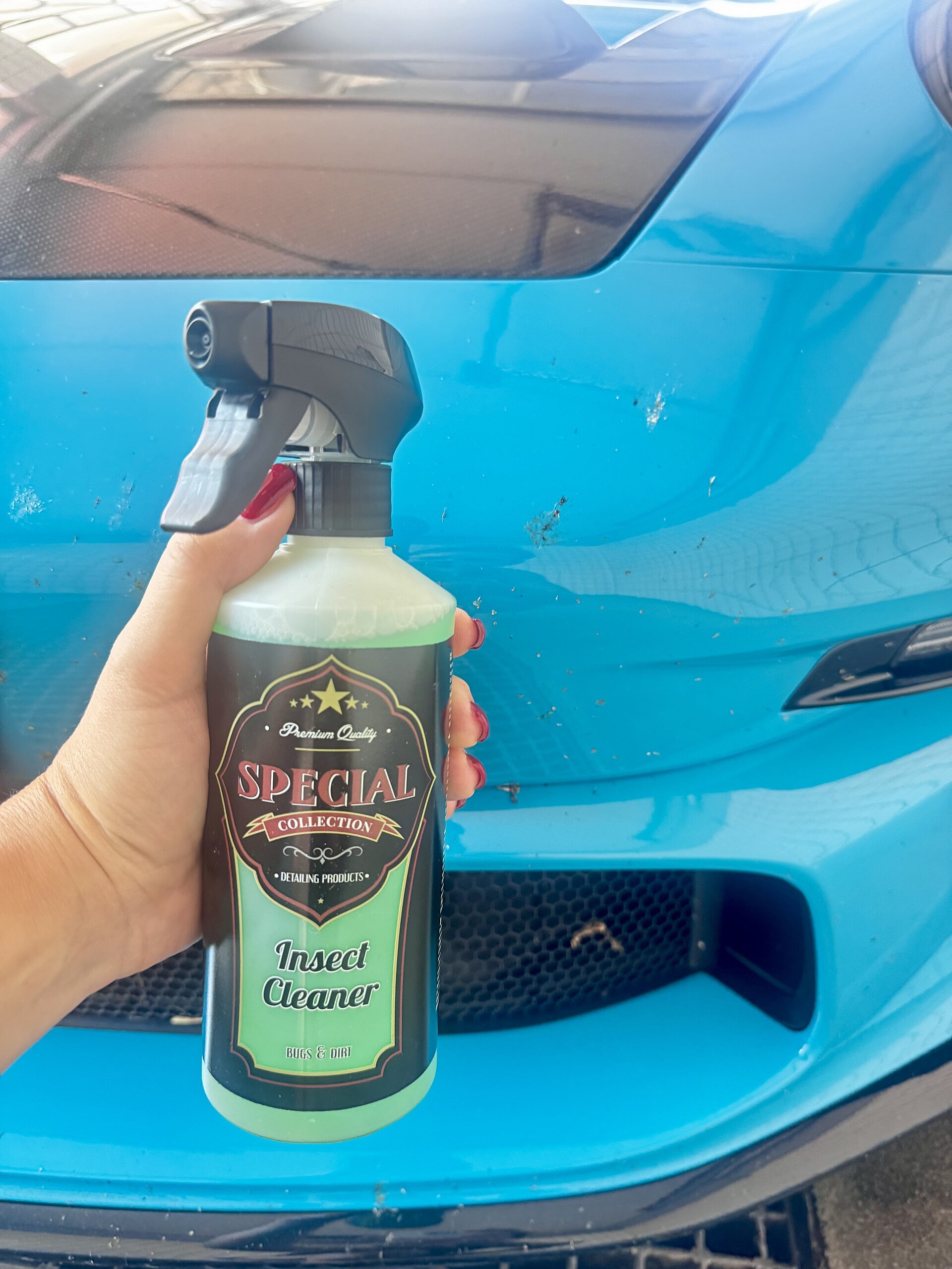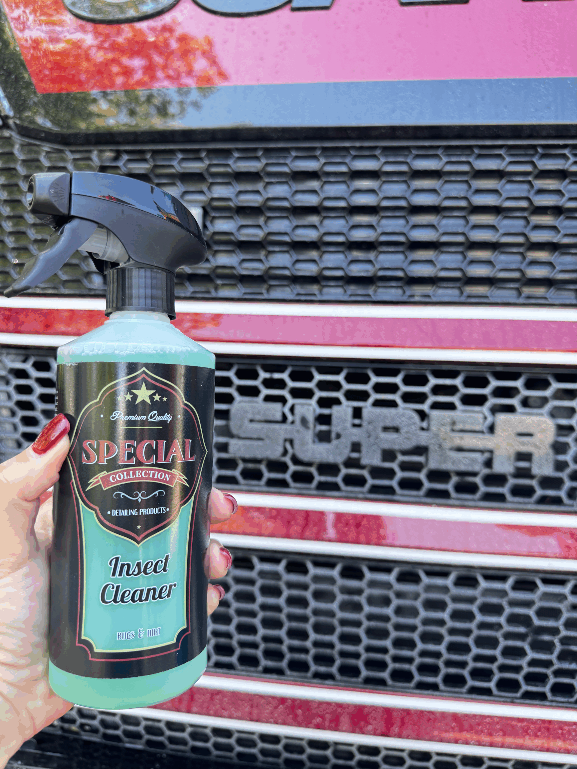 Nach einer längeren Fahrt sehen Stoßstange, Motorhaube oder Spiegel oft aus wie ein Magnet für Insektenreste – doch genau hier kommt der Insektenentferner von Special Collection ins Spiel. Die leistungsstarke Formel löst selbst eingetrocknete Rückstände zuverlässig an, ohne den Lack, Kunststoff, Glas oder Chrom anzugreifen.